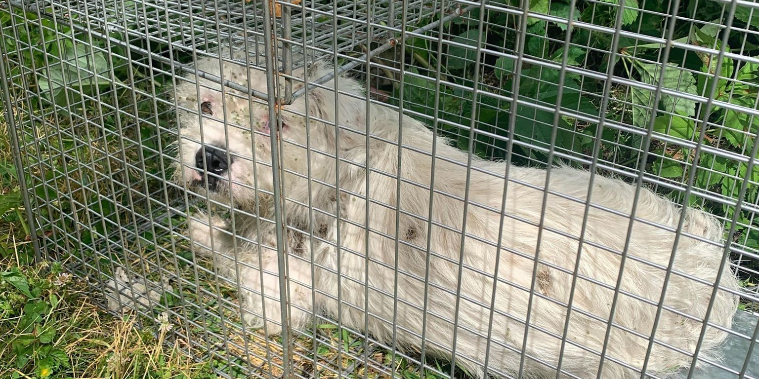 The exhausting two-day search finally ended after the scruffy pup was successfully captured in a live trap, lured there with the help of an older dog he had first arrived with.