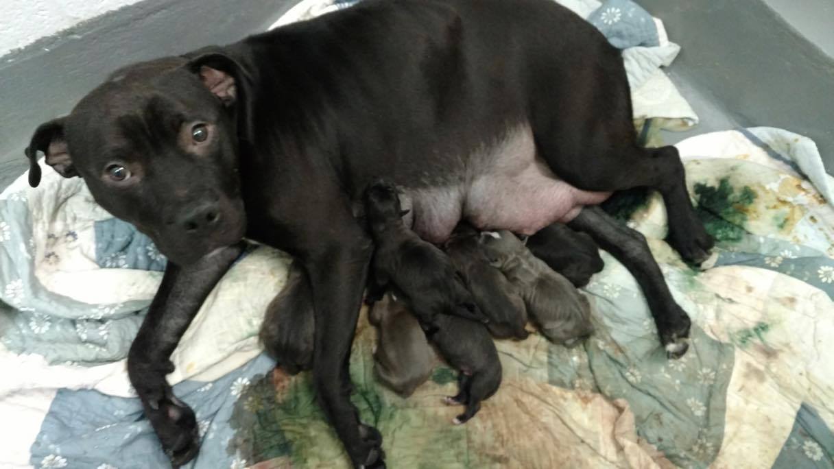 Several days after she arrived, Charlize gave birth to 9 beautiful puppies. One puppy was born with medical issues and did not survive past the first day, but the remaining 8 puppies grew into chunky, healthy miniature models of their mother over the next several weeks. Charlize spent part of this amazing journey in a foster home, where we learned that she's actually a lap-dog at heart and she loves snuggling with every person she meets.