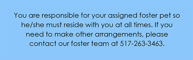 Remember to take things slow. No parties, special trips and limited visitors until your new foster dog is more comfortable. When it’s time to introduce your foster dog to your current pets, go slow and supervise at all times, preferably with assistance.