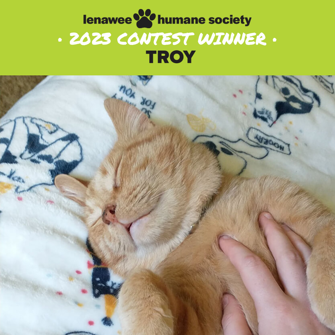 Troy is the absolute dream cat! He’s a lover and really just wants to be with people. His favorite toys are pipe cleaners, bat-the-ball tower, and bubbles. His favorite person is his Mom, but he is best buds with Dad too! Troy loves to eat we told, and wishes mom would give it to him every day. If Troy could sleep all day and play all night, he would!