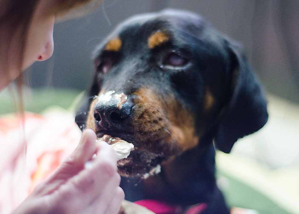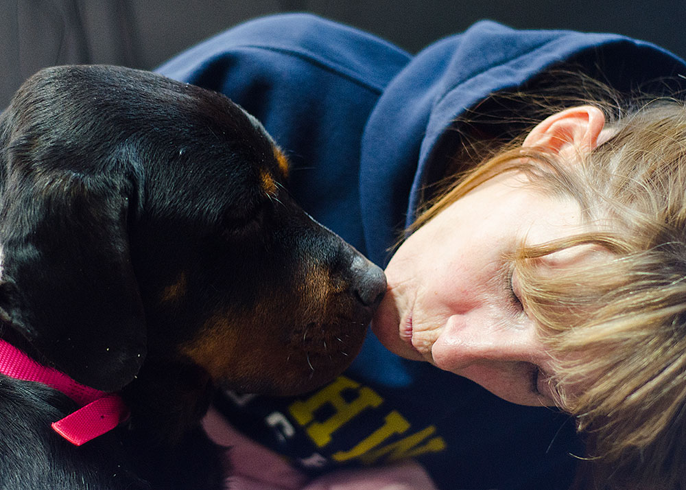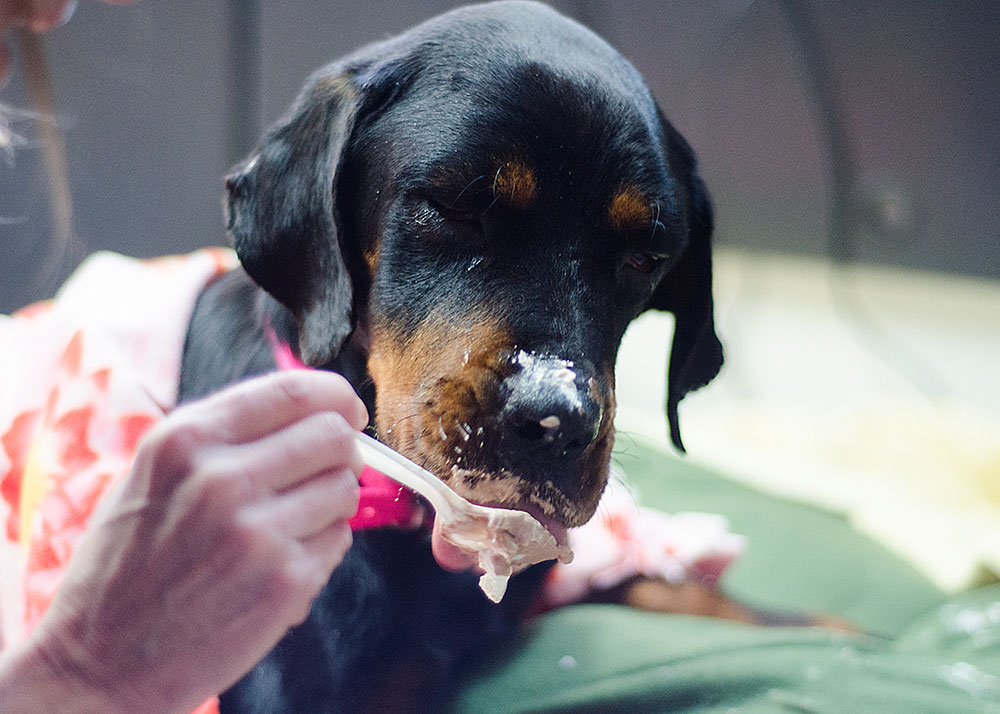The rottweiler mix was severely underweight, blind, had swollen lymph nodes and she couldn't stand on her own. Yet she found a way to cuddle up to our staff members and immediately steal their hearts. She was given the comfiest bed at the shelter, yummy food, fresh water and lots of snuggles. We started calling her Phoenix.
