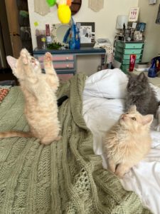 Three feral kittens were recently found trying to survive the frigid winter on their own. To make matters worse, they had never been around people and it showed. Because of their spicy personalities, we named them Diabla, Habanera and Ghost Pepper, and they affectionately became known as “The Spicy Purrrritos.”