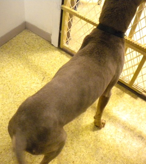 Abandoned, alone, and freezing was a puppy inside a filthy dog crate. Although there was a feces-covered dog dish inside the crate, the puppy obviously had not experienced a real meal in months. He was sleeping in his own filth with no escape available to him. Our staff was shocked but immediately pulled him out and got to work cleaning him up, getting him warm and feeding him. We named this sweet, innocent boy Survivor ("Suri" for short) because our staff and volunteers are dedicated to the care, love and commitment it takes to bring babies like him back to health.