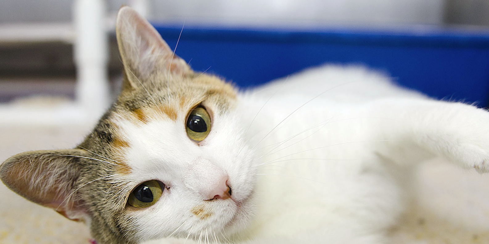 Imagine walking through the brightly lit hallways leading back to our kennel areas. The bright colors lead you from room to room, and the sound of families gushing over excited dogs with wagging tails makes you smile. You hear soothing music playing over the sound system, and a cat waiting patiently in his cage sticks his arm out to say "Hey, come here!"